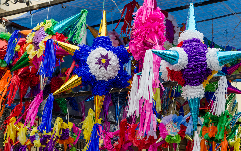 Celebrations begin with Las Posadas (nine days of processions reenacting Mary and Joseph’s search for shelter), ending in lively parties with piñatas filled with treats, tamales, and fireworks on Christmas Eve.